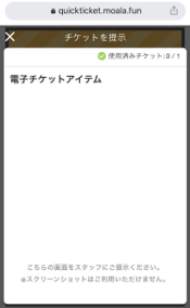 7.イベント当日、チケットを提示する [チケットを提示]をタップすると、提示画面が表示されます。この画面を、会場のスタッフにご提示ください。 |